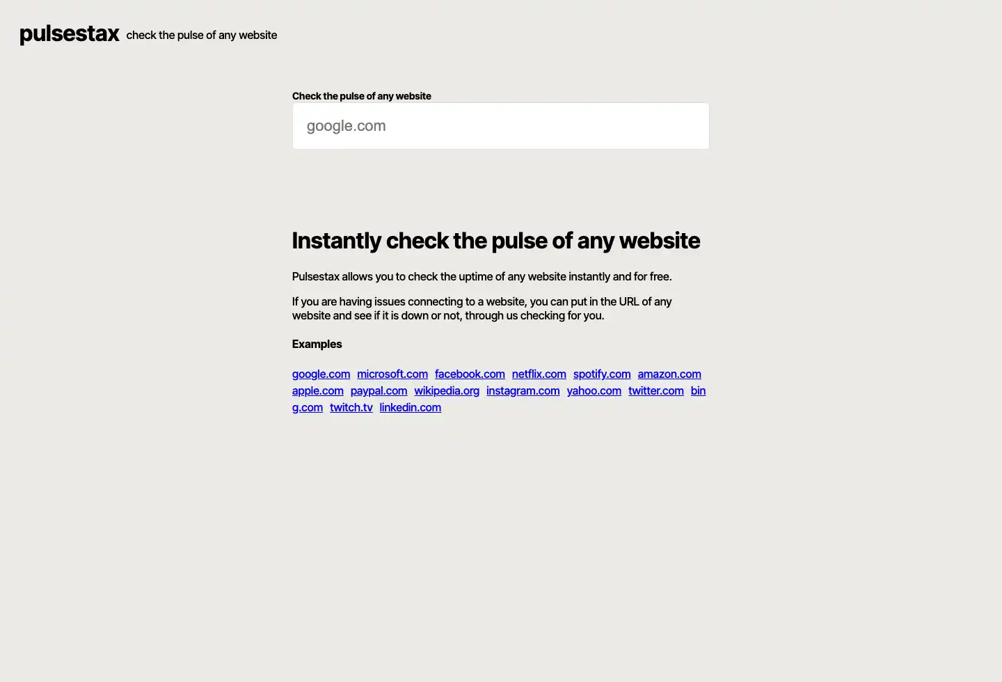 Pulsestax | Check the uptime and pulse of any website